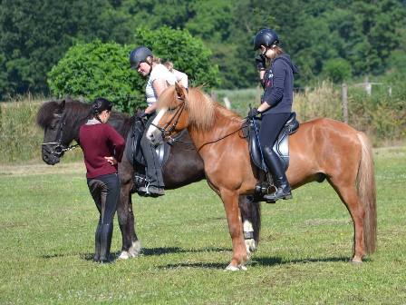 Nach einer kurzen Vorstellungs-Runde der acht Teilnehmer, in der Infos zu den Pferden und den eigenen Vorstellungen für den Lehrgang besprochen wurden, folgte auch schon die erste von vier Reiteinheiten an diesem Wochenende.