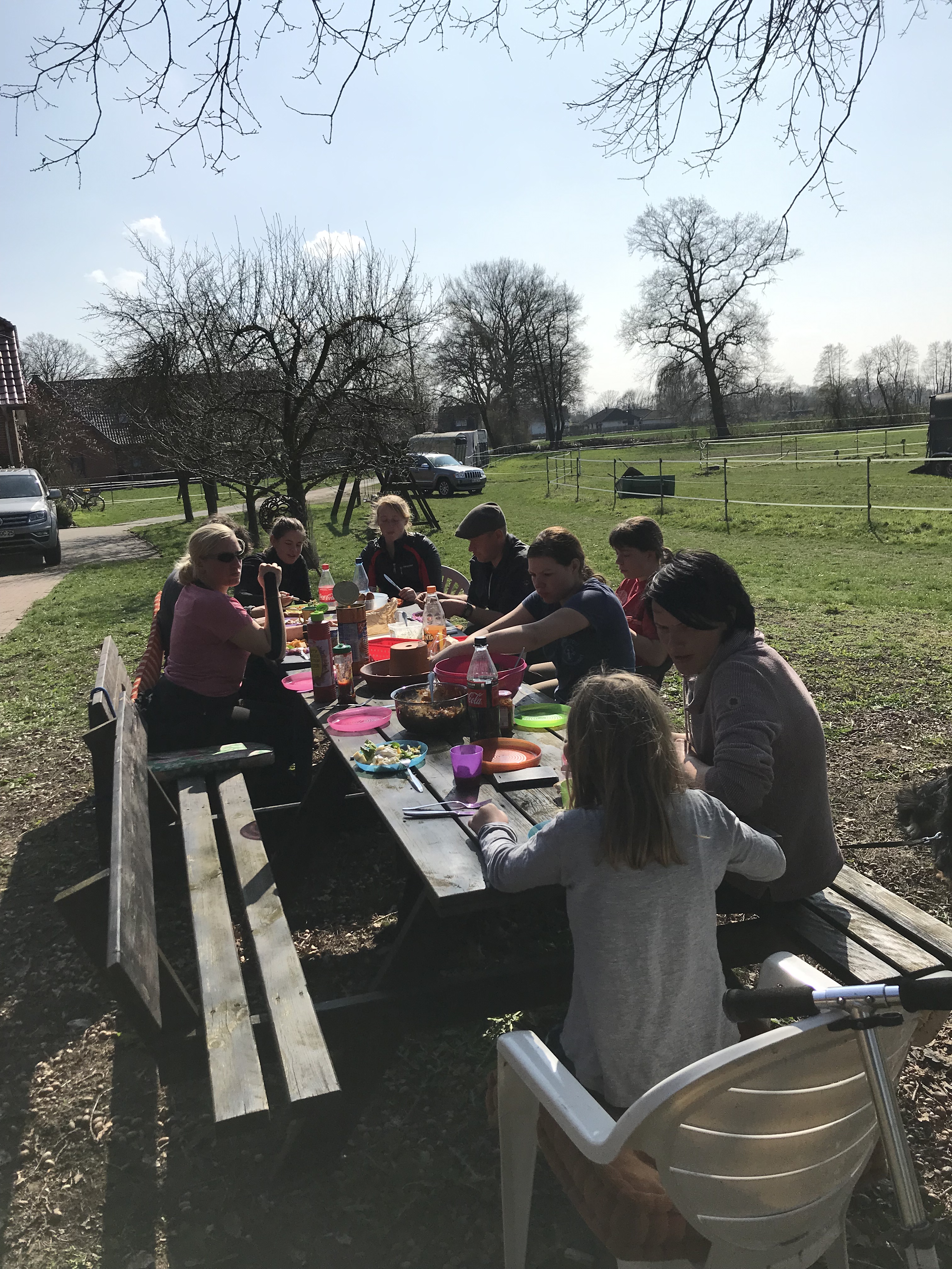 Wie immer hatte jeder der Gruppe etwas für ein leckeres Buffet beigesteuert und nach dem Mittagessen mit anschließender Pause draußen in der Sonne, ritten alle Gruppen ein zweites Mal.