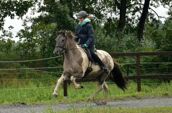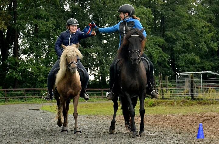 Daraufhin trat das Jugendteam gegen die Erwachsenen im Schrittrennen an. Haushoch gewannen die Jugendlichen, hatten allerdings beim folgenden Wettkampf dem "Töltschleichen" dann das Nachsehen.
