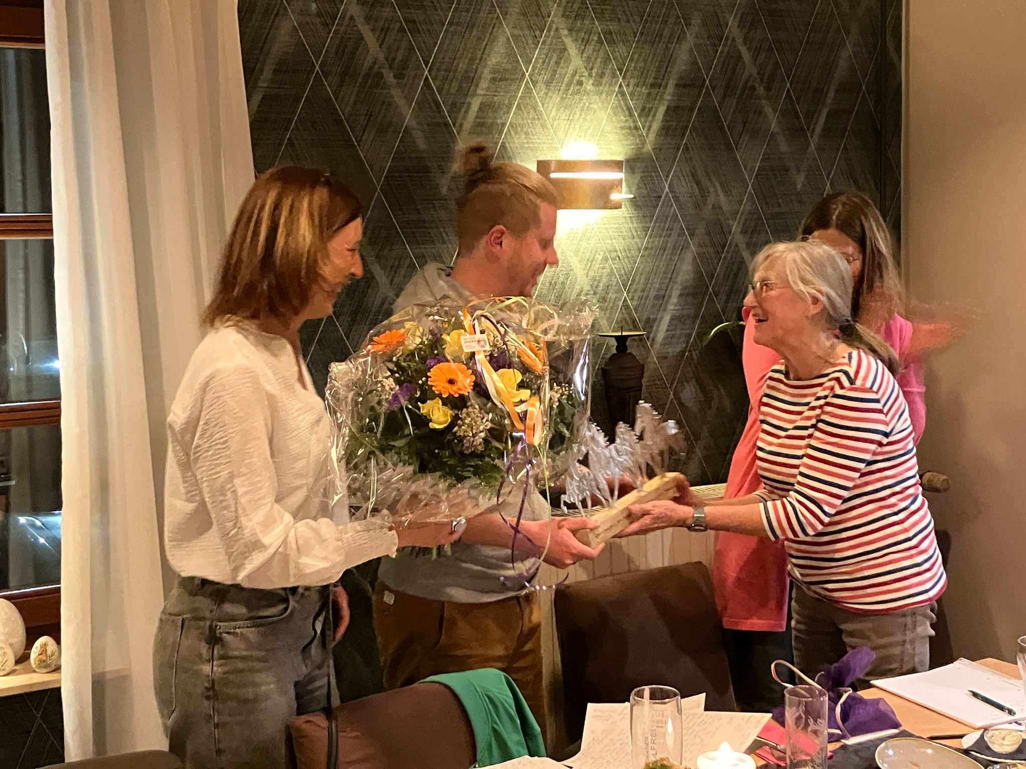 Karin, Gründungsmitglied und langjährige Geschäftsstellenleiterin, wurde für ihre Verdienste ausgezeichnet.